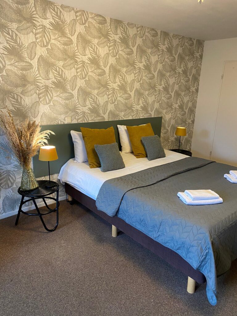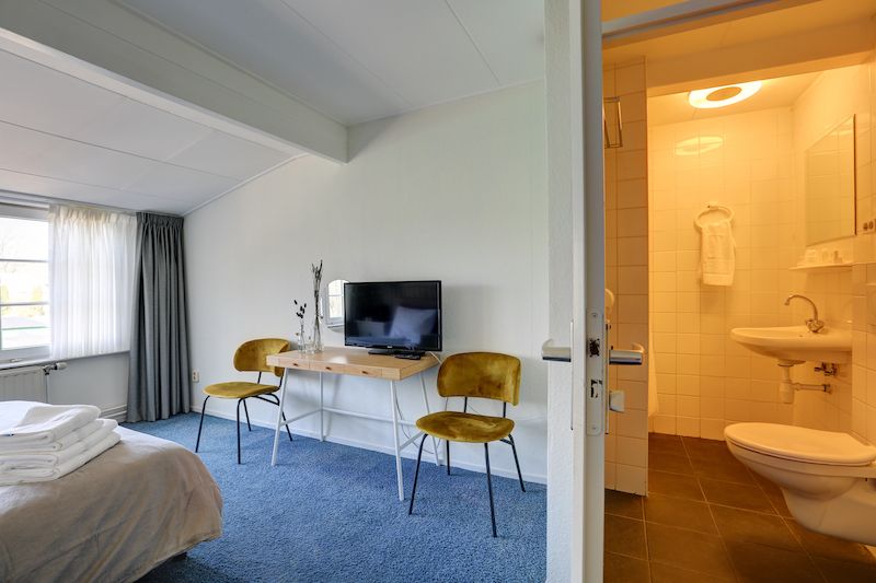 Je kunt bij ons in vijf verschillende lookamers overnachten in een vrijstaand gebouw achter het restaurant. Het zijn ruime kamers, met alle vijf een eigen terras. Een plek waar je bijvoorbeeld heerlijk in het zonnetje kunt genieten na een fietstocht of wandeling. De kamers zijn allemaal op de begane grond, met een eigen badkamer. De kamers zijn ruim, dus er is ruimte voor een extra bed, of een kinderbedje. In overleg maken wij dit graag voor jou in orde.